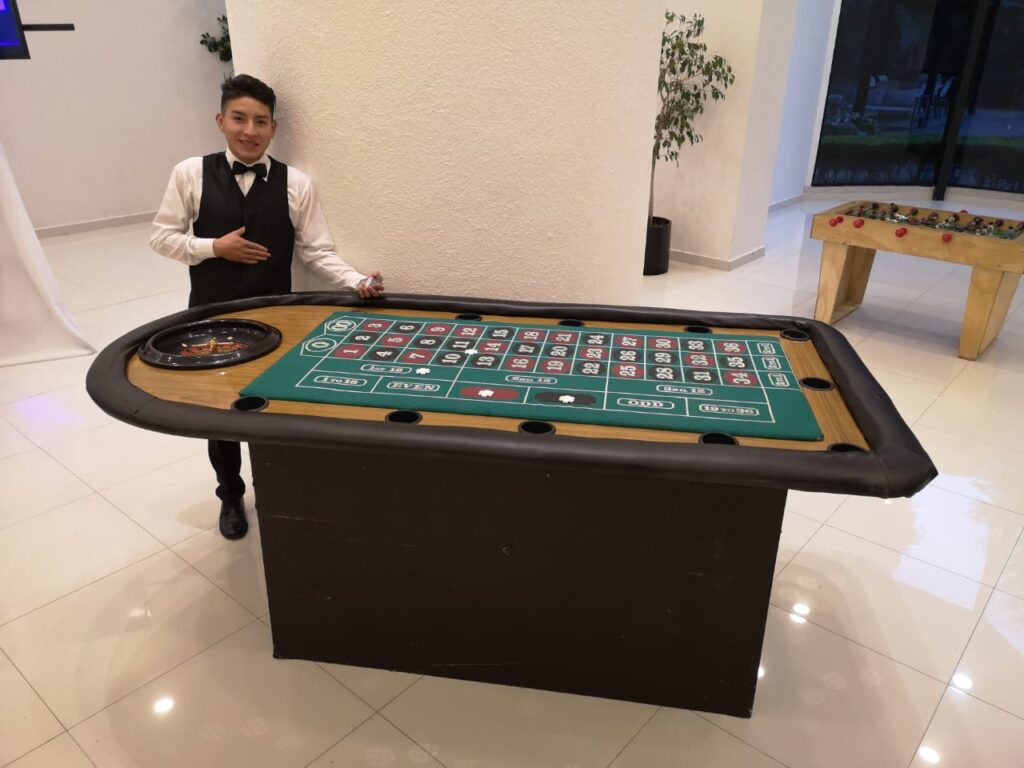 * 1 Animador * 3 Mesas de casino ( Ruleta, Black Jack, Bingo) * 3 Dealers * Fichas incluidas en cada mesa * 30 Regalos * Equipo de Audio * Material para batucada 30 personas (Corbatas, Sombreros, Mechudos) * 5 hrs de servicio